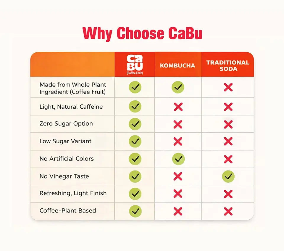 - Lightly & Naturally Caffeinated from Cascara (coffee fruit)